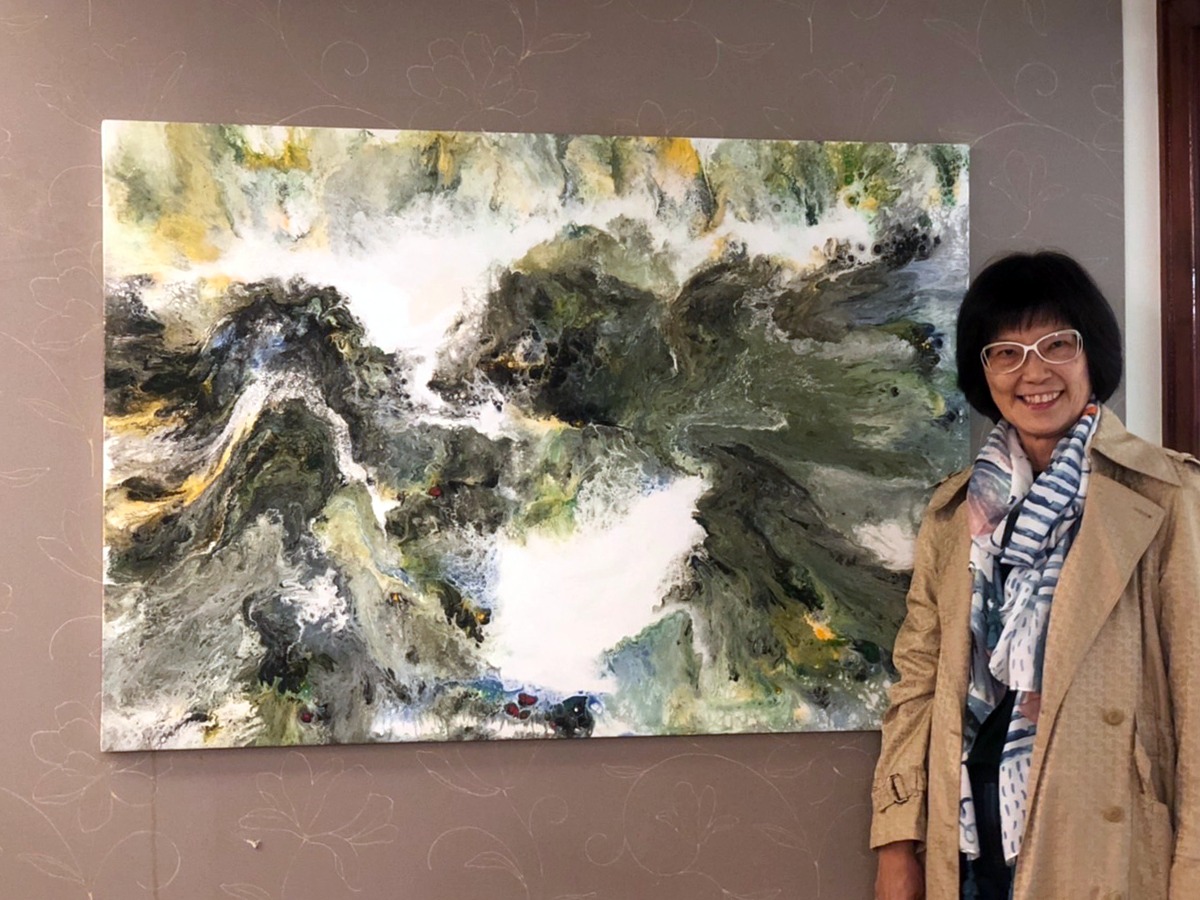 國立台灣師範大學設計研究所、國立台灣藝術大學視覺傳達系畢業。擅長於凹版雕刻與設計,近期從事潑彩畫創作。大自然的「醞」與「變」,藉由各色顏料在畫布上的流動,產生了色彩之間融合裂解的效果,大地擾動震盪的具象形式,遂轉而為視覺飽滿的抽象意境。
