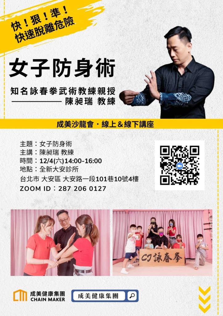 ◉主題:女子防身術主講:陳昶瑞 教練