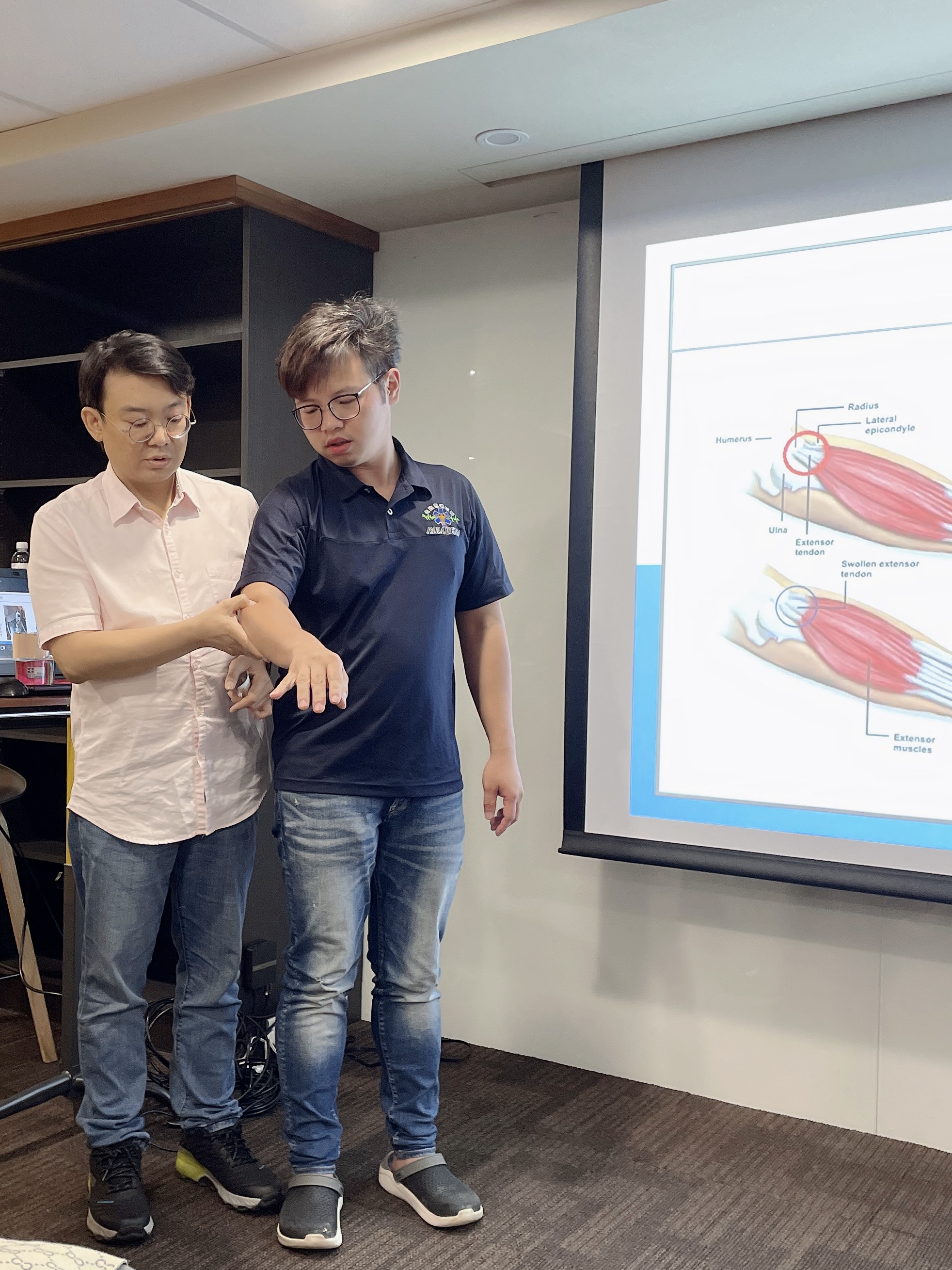 接著,德生老師深入淺出地解說了運動與身體的關聯性,並介紹了體適能項目的內容。他以生動的案例告訴我們運動貼紮的重要性,讓我們更了解如何在運動中照顧好自己的身體。